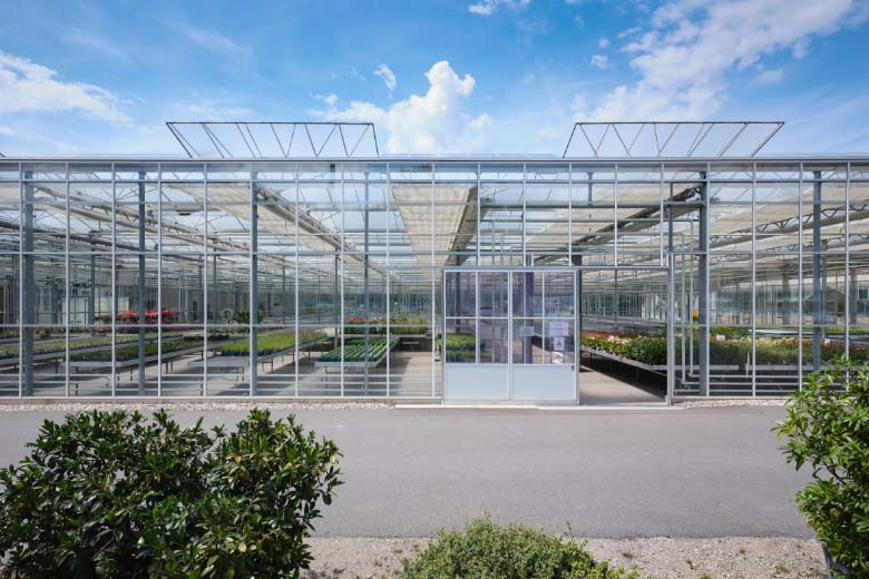 Neubau von Anzuchtgewächshäusern und Verkaufsgewächshaus.
