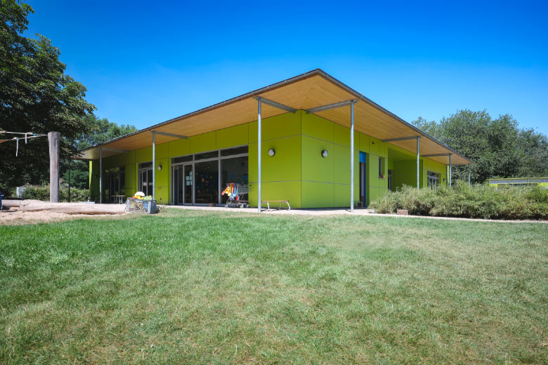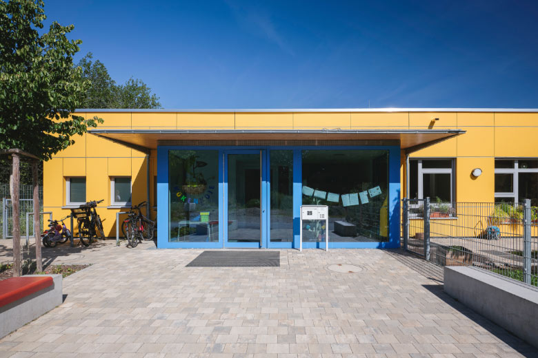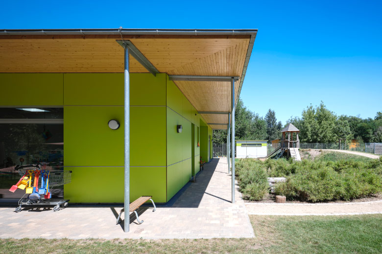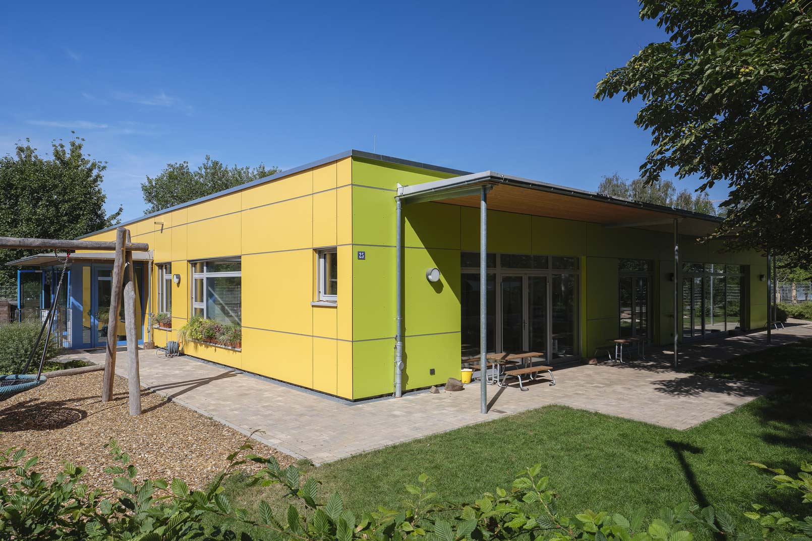 Neubau einer inklusiven Kindertagesstätte mit zwei Gruppen in Holzständerbauweise.
